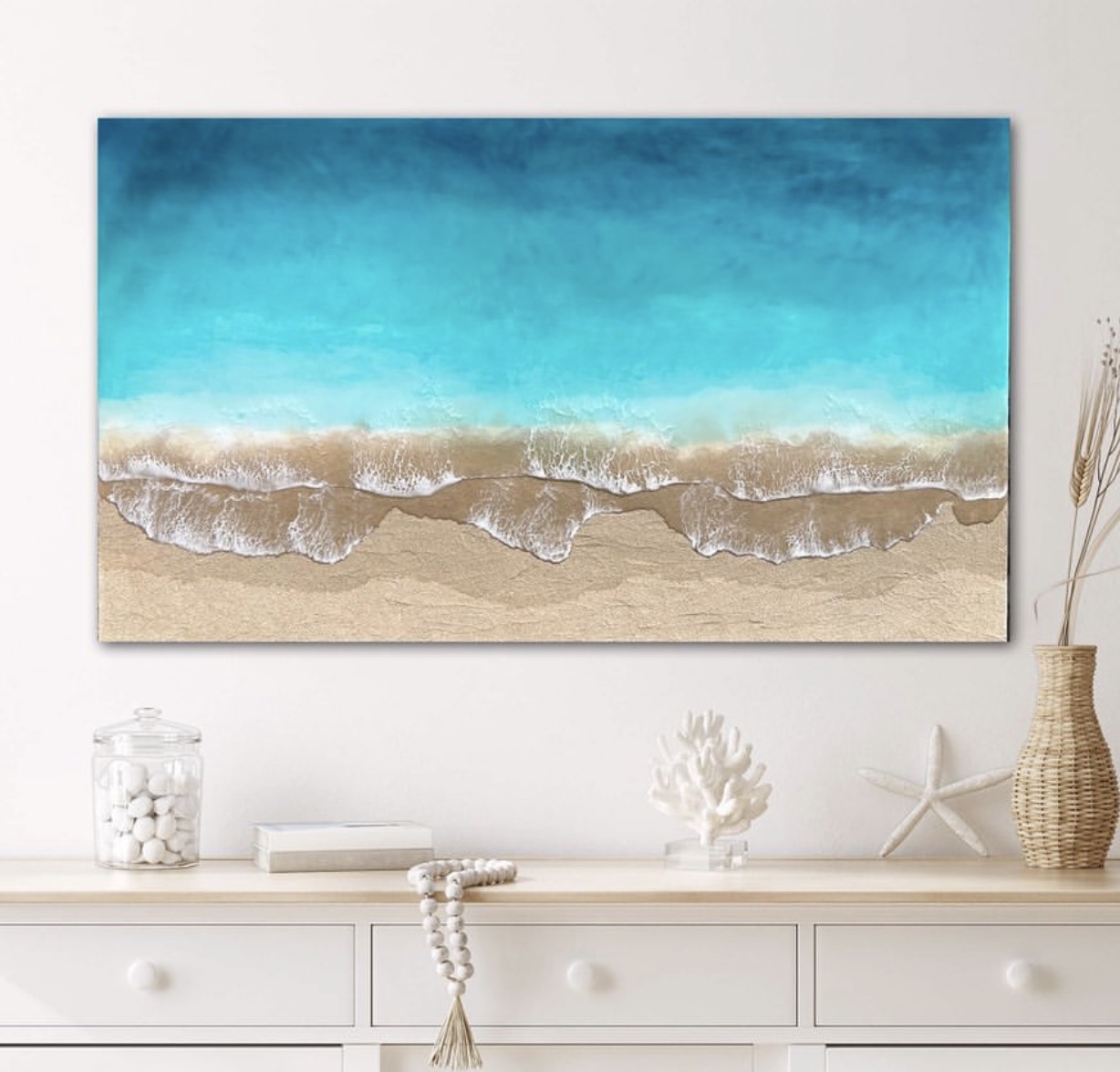 Preciosa obra que representa la playa de Zahara. Sus olas delicadas y las aguas turquesas, darán un toque único a tu hogar, transmitiendo la paz y serenidad que ofrecen sus playas.